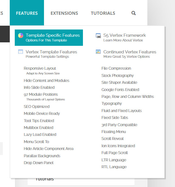This menu system works off of the core Joomla jquery/mootools scripts so no extra javascript library is needed and keep download sizes to a minimum. Also, if you do not want to use this menu you can simply turn it it off from the template configuration page.